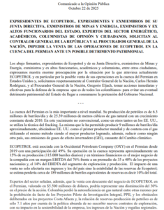 Exfuncionarios de MinMinas y Ecopetrol pidieron a autoridades frenar venta de Permian octubre 22, 2025